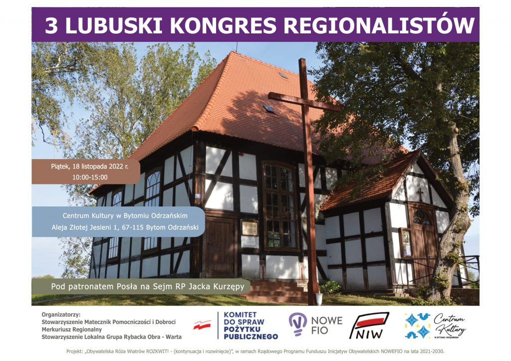 Już jutro! 3 Lubuski Kongres Regionalistów , organizowany w ramach projektu „Obywatelska Róża Wiatrów ROZKWIT! – (kontynuacja i rozwinięcie)”