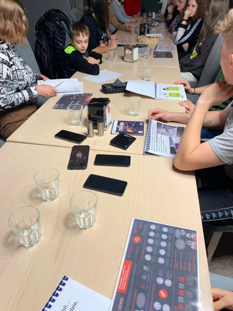 „Rozmowa z policjantem”. Warsztaty dotyczące cyberuzależnienia były zorganizowane dla grupy rówieśników. Na spotkanie został zaproszony policjant, Który uświadomił uczestnikom spotkania jakie zagrożenia wiążą się z nadmiernym użytkowaniem telefonów komórkowych oraz komputerów Policjant podał kilka przykładów. Które spowodowały poruszenie wśród osób biorących udział w spotkaniu, a tym samym uczestnicy zaczęli zadawać mnóstwo pytań związanych z uzależnieniem